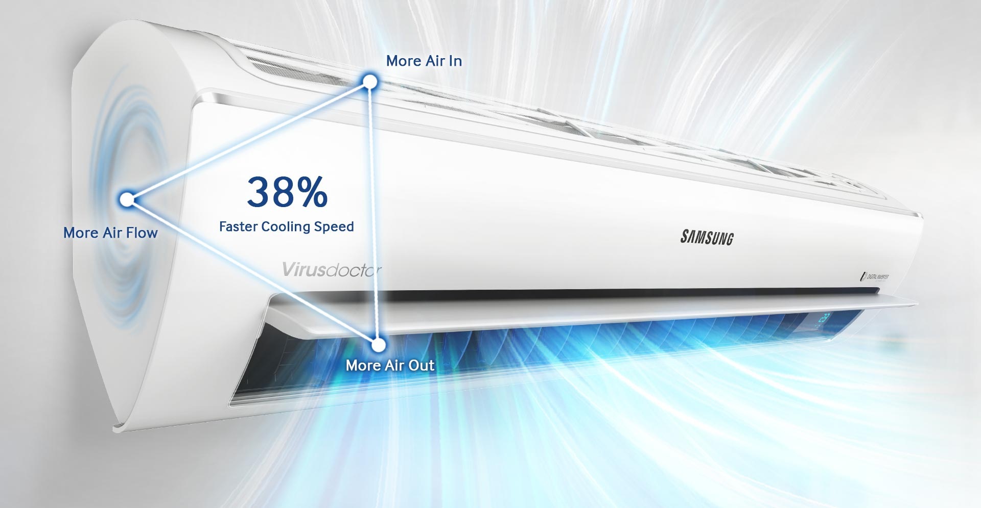Инновационная треугольная конструкция охлаждает воздух на 38% быстрее1, что позволяет создать комфортные условия еще быстрее. Уникальная конструкция кондиционера имеет большее впускное отверстие, благодаря чему в него поступает больше воздуха, а увеличенный вентилятор также способствует тому, чтобы воздух охлаждался и циркулировал по помещению быстрее.